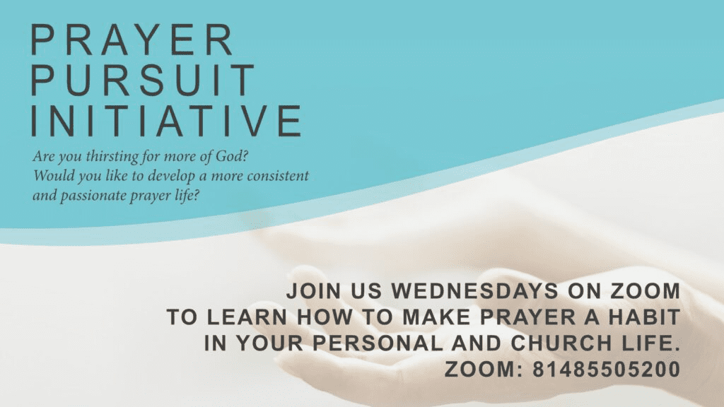 - Prayer Pursuit this Wednesday, December 14th at 7:30pm! Are you thirsting for more of God? Would you like to develop a more consistent and passionate prayer life? Join us Wednesdays on Zoom to learn how to make prayer (https://us02web.zoom.us/j/81485505200)