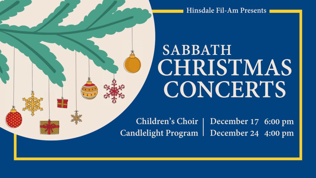 - Sabbath, Dec 24 | 4:00pm | Candlelight Program .You won’t want to miss this celebration of Christmas with a candlelight concert featuring talented musicians of all ages from our church family.