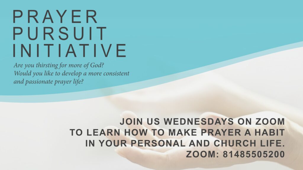 - Prayer Pursuit this Wednesday, December 7th at 7:30pm! Are you thirsting for more of God? Would you like to develop a more consistent and passionate prayer life? Join us Wednesdays on Zoom to learn how to make prayer (https://us02web.zoom.us/j/81485505200)