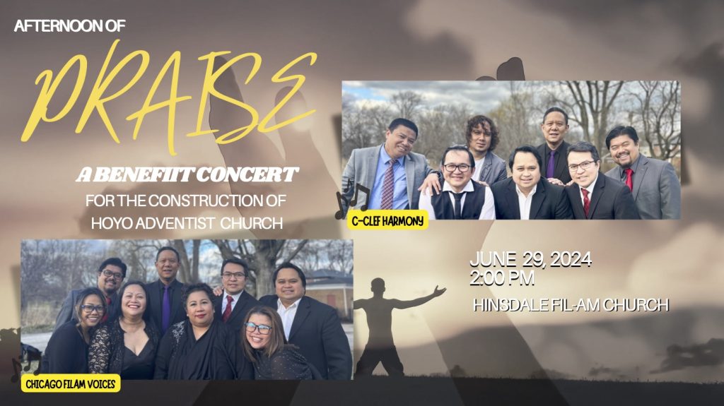 Join us for an afternoon of praise with special guests C-Clef Harmony and Chicago Fil-Am Voices. They will be singing to raise funds for the construction of Hoyo Adventist Church in the Philippines.