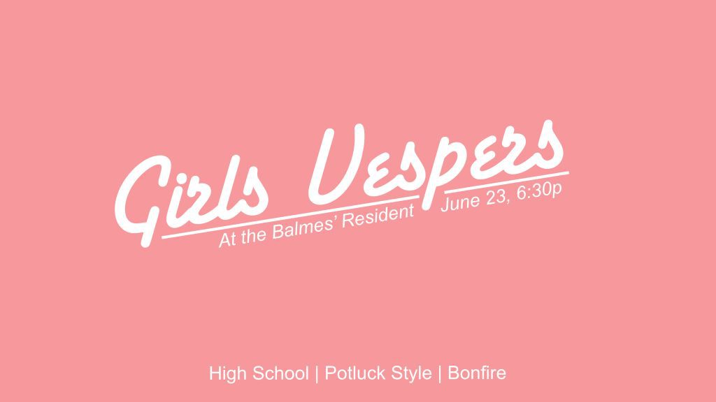 - Girls Vespers at the Balmes’ | June 23, 6:30pm