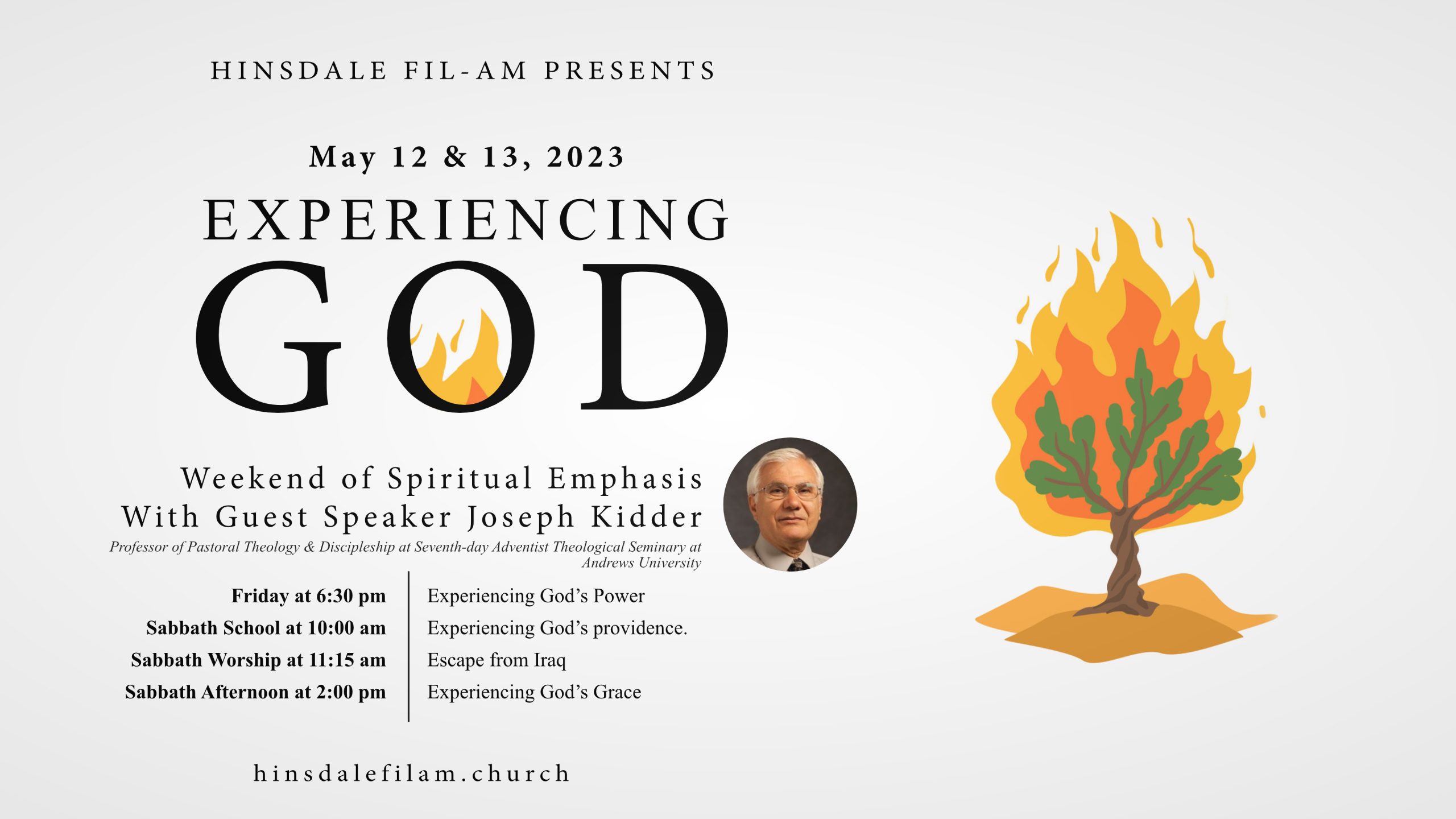 - Are you thirsting for more of an experience with God? Join us for a weekend of spiritual emphasis with guest speaker Dr. Joseph Kidder. Dr. Kidder is a professor of Pastoral Theology & Discipleship at the Seventh-day Adventist Theological Seminary at Andrews University. All are invited!
