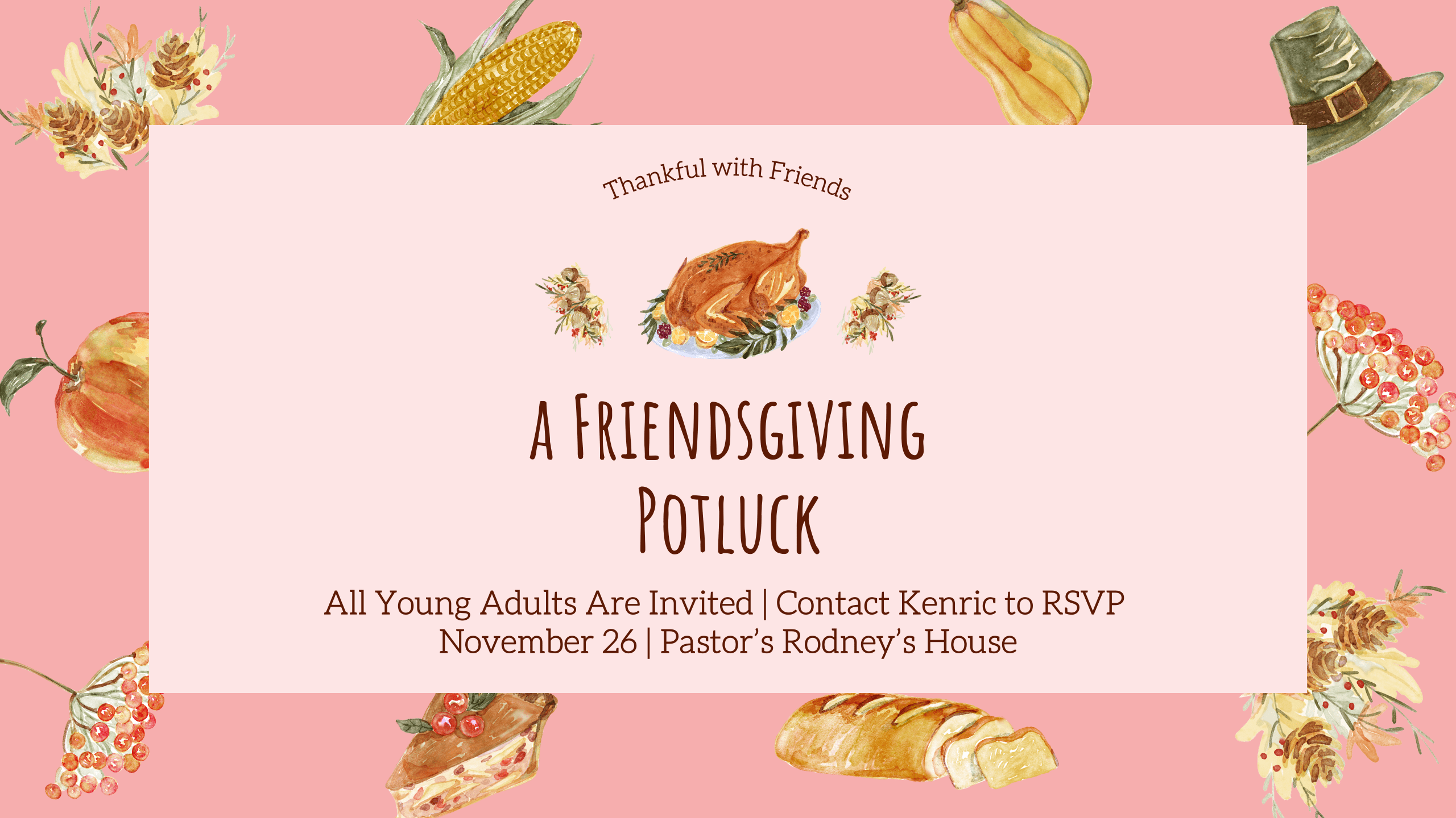 - Young Adult Friendsgiving Dinner | November 26 | Sunday, 4:30PM